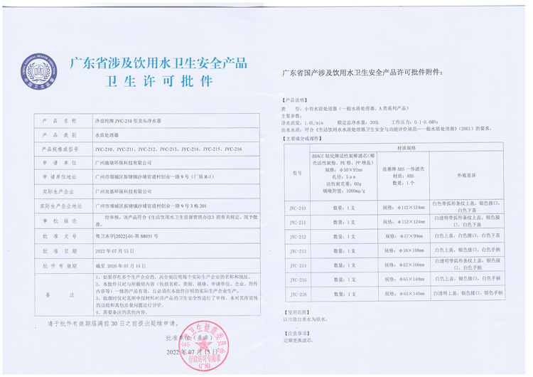 | 【衛(wèi)批】:粵衛(wèi)水字【2022】-01-第S8051號(hào) | 【凈化效果】:除氯,祛異味,除色,去除有機(jī)物雜質(zhì),優(yōu)化水質(zhì),改善口感 |